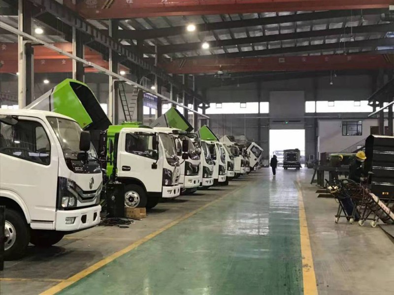 16)污水箱內采用大平面斜坡結構, 大卸料角度可達50度,更易于傾倒垃圾。污水箱內設置了防溢滿報警裝置和高壓噴淋清洗裝