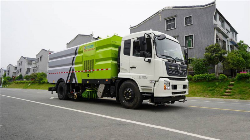 1)該車集掃路車、灑水車和高壓清洗車功能于一體,具備路面清掃、路面洗刷、高壓清洗、低壓沖洗、路緣石洗刷、垃圾收集、污水回收、噴霧降塵和道路隔離墻清洗、小廣告清洗等多種作業功能。