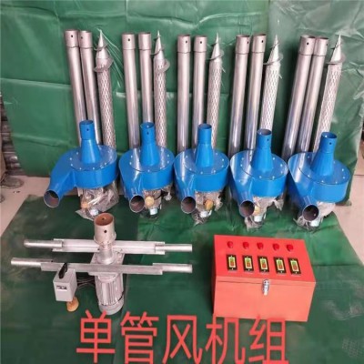 管降溫風機,是一種國內現有的移動式降溫設備的進一步產品,全套由中負壓離心風機、電控送插壓管機、風管、電控開關箱等組成。該機構簡單,使用方便,采用強制通風,使糧堆與外界空氣循環,降低糧溫和水份,可有效解決目前糧食倒堆涼曬問題,達到低溫儲糧目的。還可以預防延緩和消除糧食發熱,抑制害蟲,具有減少糧食損壞,減輕勞動強度,顯著提高經濟效率。 該機設備結構簡單,使用方便,既可單機應用,又可組群操作。是對目前固定風網通風的有益補充。對處理梁堆局部問題, 更能體現出其功效。