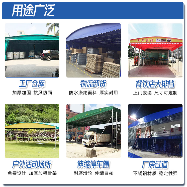 • 活動雨棚 移動推拉過道蓬 工字鋼推拉棚 商場活動蓬