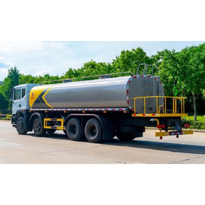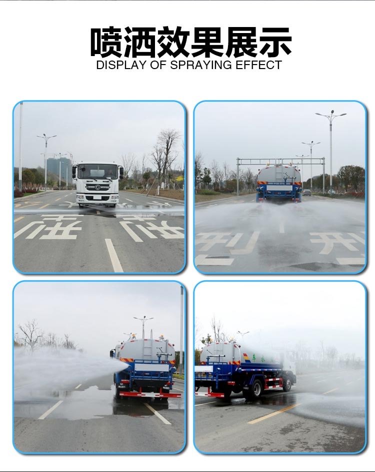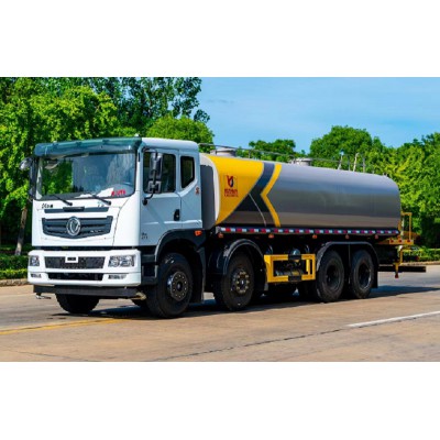 底盤搭配玉柴270馬力6缸發動機,華神T5駕駛室,陜齒大八檔變速箱,帶法蘭式取力器,5t雙前橋,10t雙后橋,11.0OR20鋼絲胎,車架28Omm,空調,氣囊座椅,中控,多功能方向盤,行駛記錄儀。上裝:罐體采用標準Q235碳鋼制作,罐體自動焊,裝水25噸,配大功率專用灑水車,可自吸自排,前沖后灑,側噴,高位花灑,主管道加粗,大通徑球閥,直通球閥式消防接口,帶后工作平臺,沖孔平臺,帶高炮。(可選裝大平臺,可裝30米霧炮降塵)。