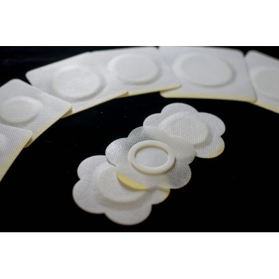 【使用方法】:使用時需把無紡水刺布和無紡水刺布附著的離型紙揭開,然后把制作好的藥膏或膏藥放入防滲圈(框)的中間,然后把無紡水刺布和無紡水刺布附著面的離型紙合攏即可。使用時把一類衛生離型紙去掉貼敷于患者部位即可