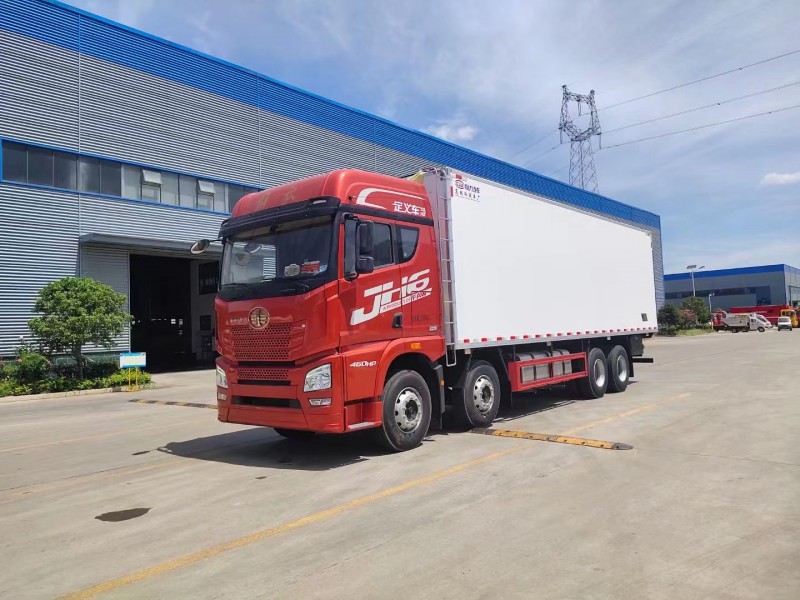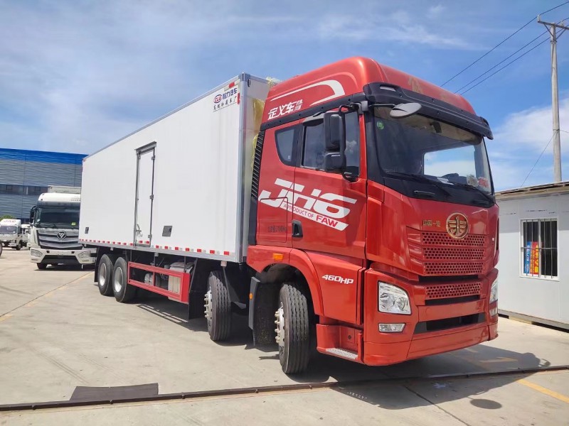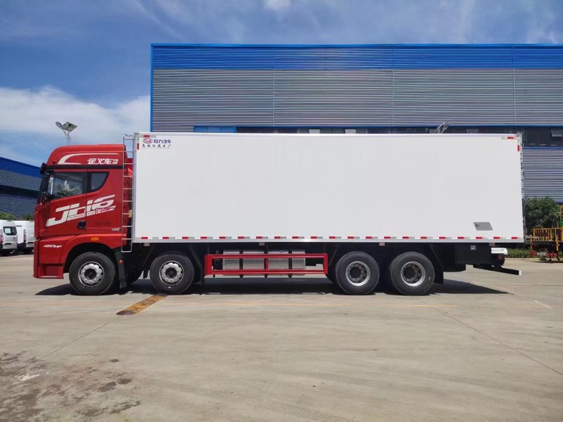 5排直立肉鉤導軌,廂體采用內外玻璃鋼,冷藏車專用保溫材料。木包鍍鋅管箱體骨架,采用斷橋隔熱工藝。底板鋁花紋板,開單側門,鋁合金型材包邊,門鎖件均為不銹鋼,后雙開門,加工具箱,加爬梯,配開利850獨立制冷機組。