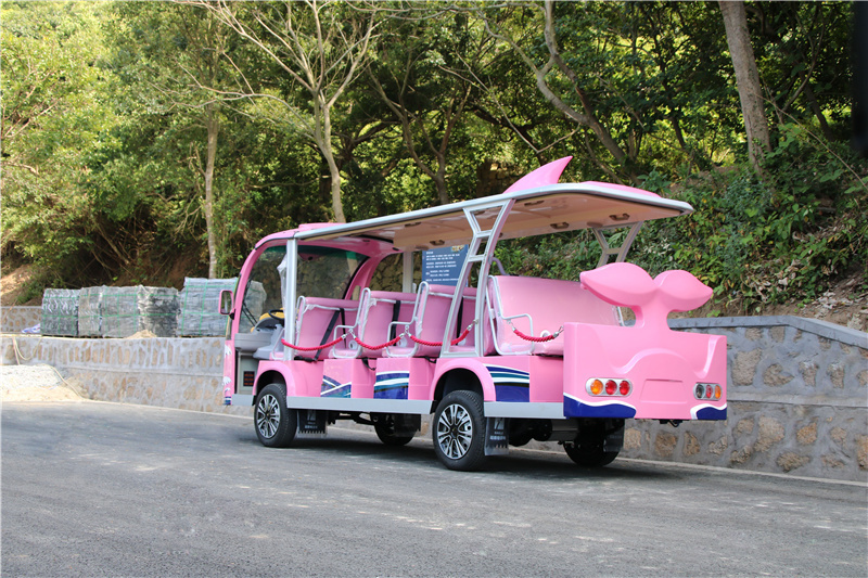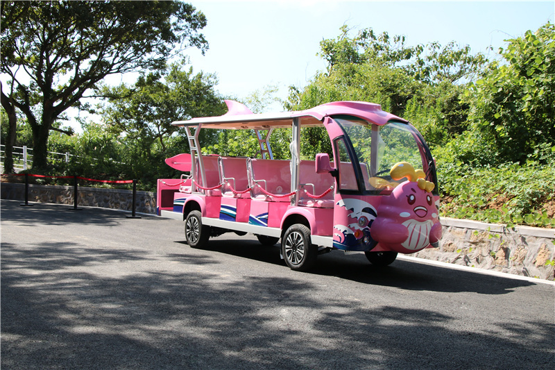 14座粉色小鯨魚游覽觀光車廠家個性化卡通電動觀光車價格