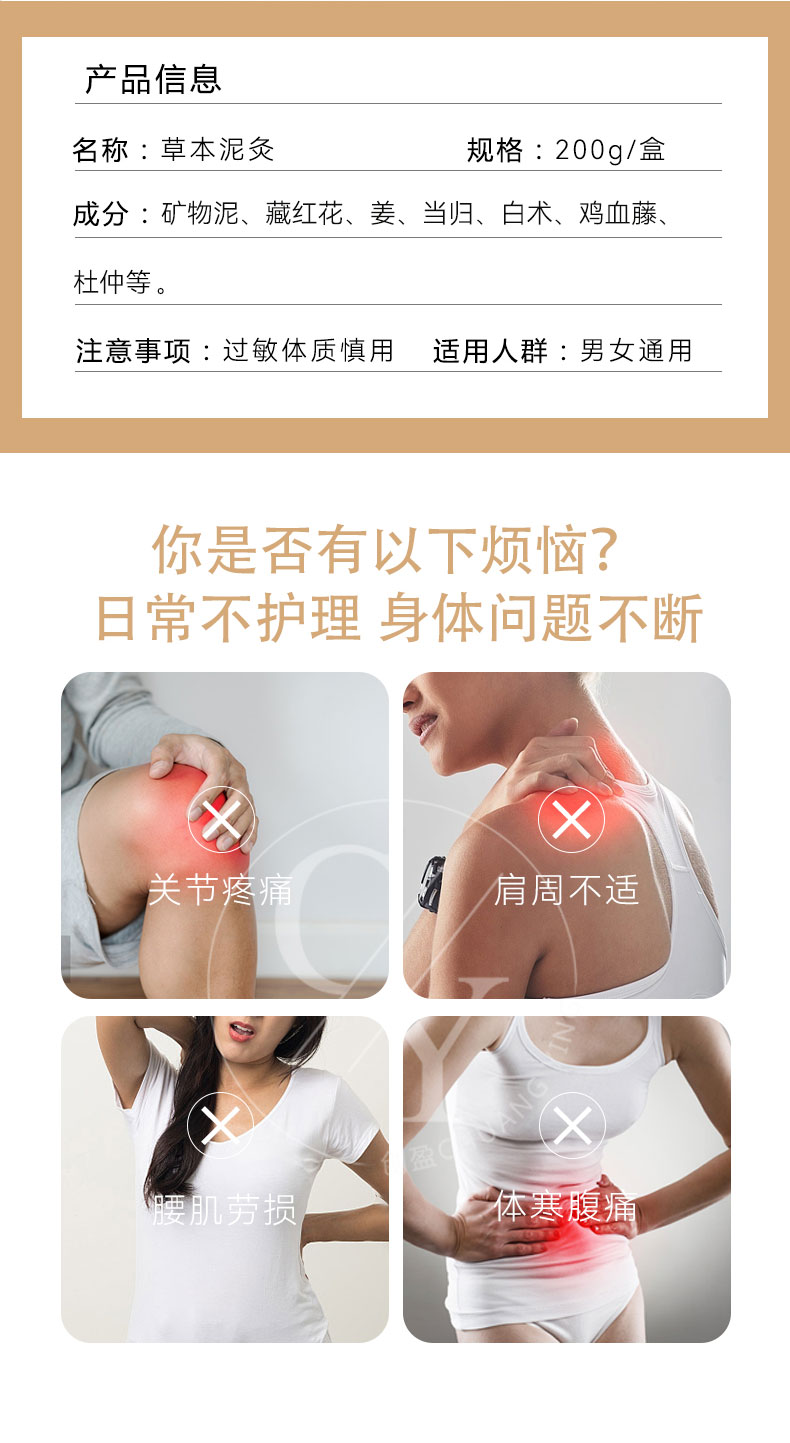 草本泥灸 美容養生館熱敷艾草老姜熱灸膏oem貼牌廠家