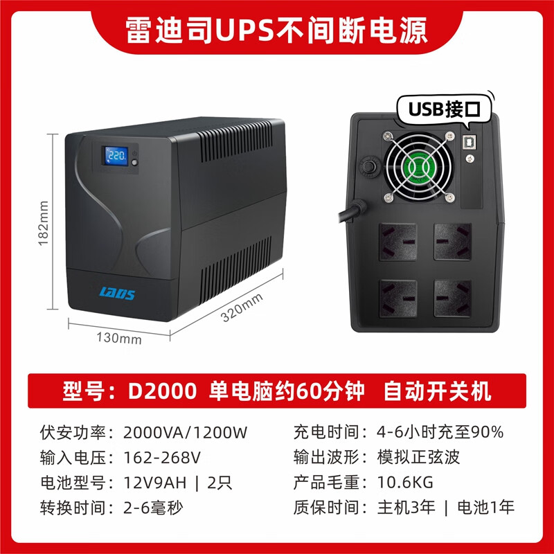雷迪司防停電備用電源UPS D2000K