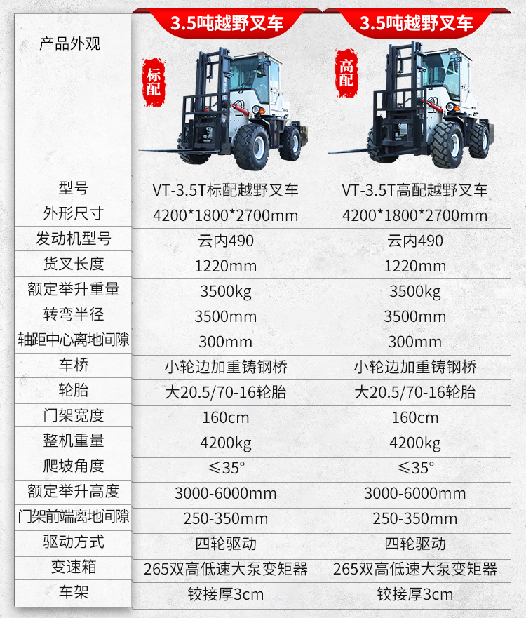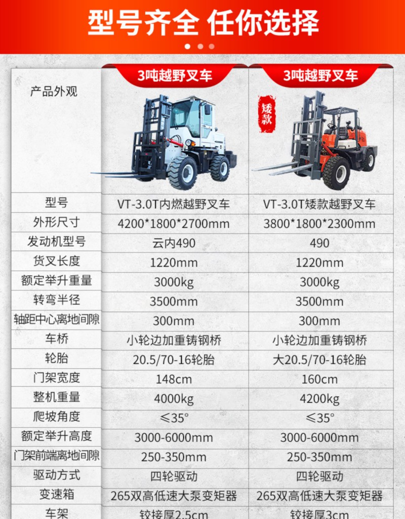 3噸越野叉車價格 四驅越野叉車廠家 泥濘工地磚廠貨叉