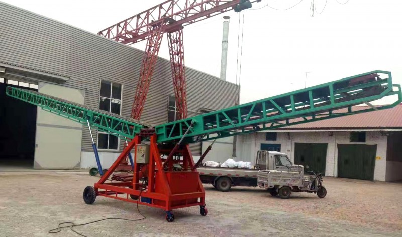 移動式皮帶裝卸輸送機是一種功效高、使用方便、機動性好的輸送裝卸設備。此機械是專門為糧倉、面粉廠、倉庫、工地堆放砂石等量身定做的一種機械。與拖拉機、平板車配合使用,移動靈活。既省時省力,又提高工作效率,是加工單位理想的輸送設備。